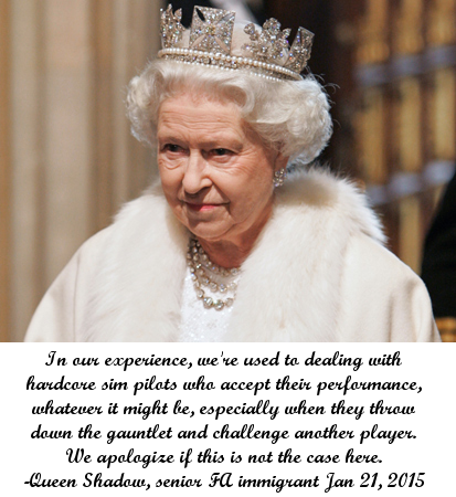 In our experience, we're used to dealing with hardcore sim pilots who accept their performance, whatever it might be, especially when they throw down the gauntlet and challenge another player. We apologize if this is not the case here.