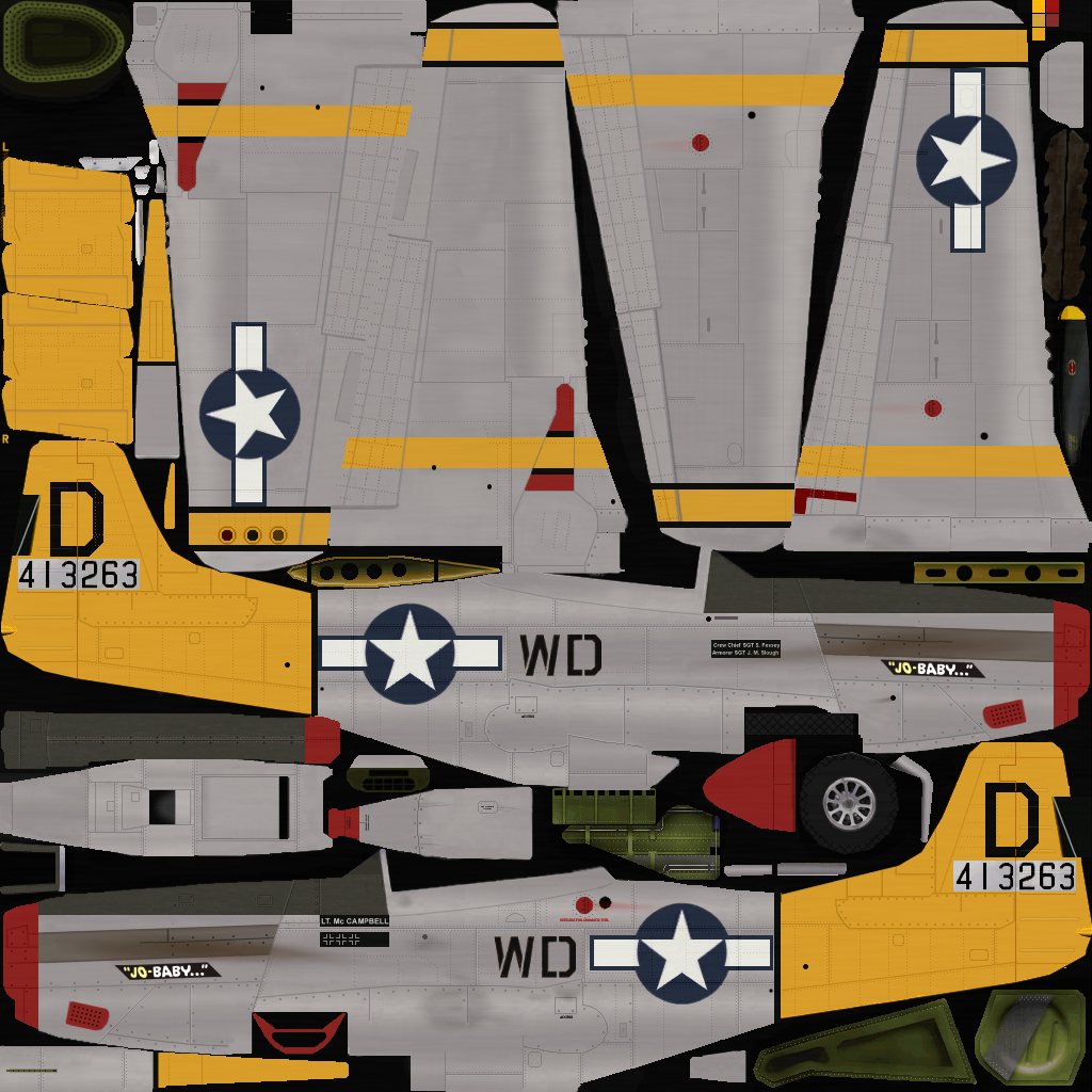 Base color layer is RGB 119/119/133. I made a gray and white mottle layer which lightens the total tone of the metal. I also bumped up the opacity of the panel lines and rivets to about double what I've been using for painted surfaces. My regular noise layers were reduced by 1% each. All other weathering layers are the same as with painted skins.
