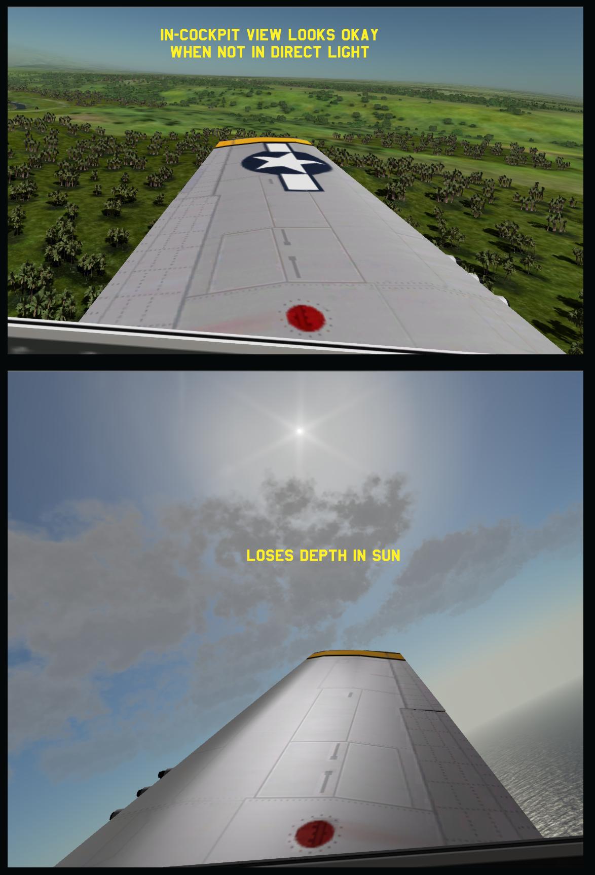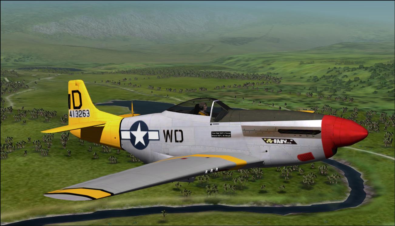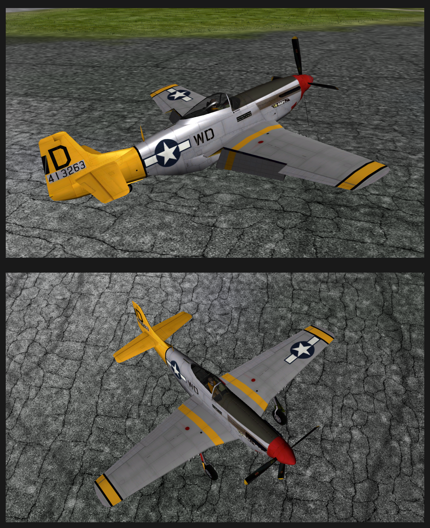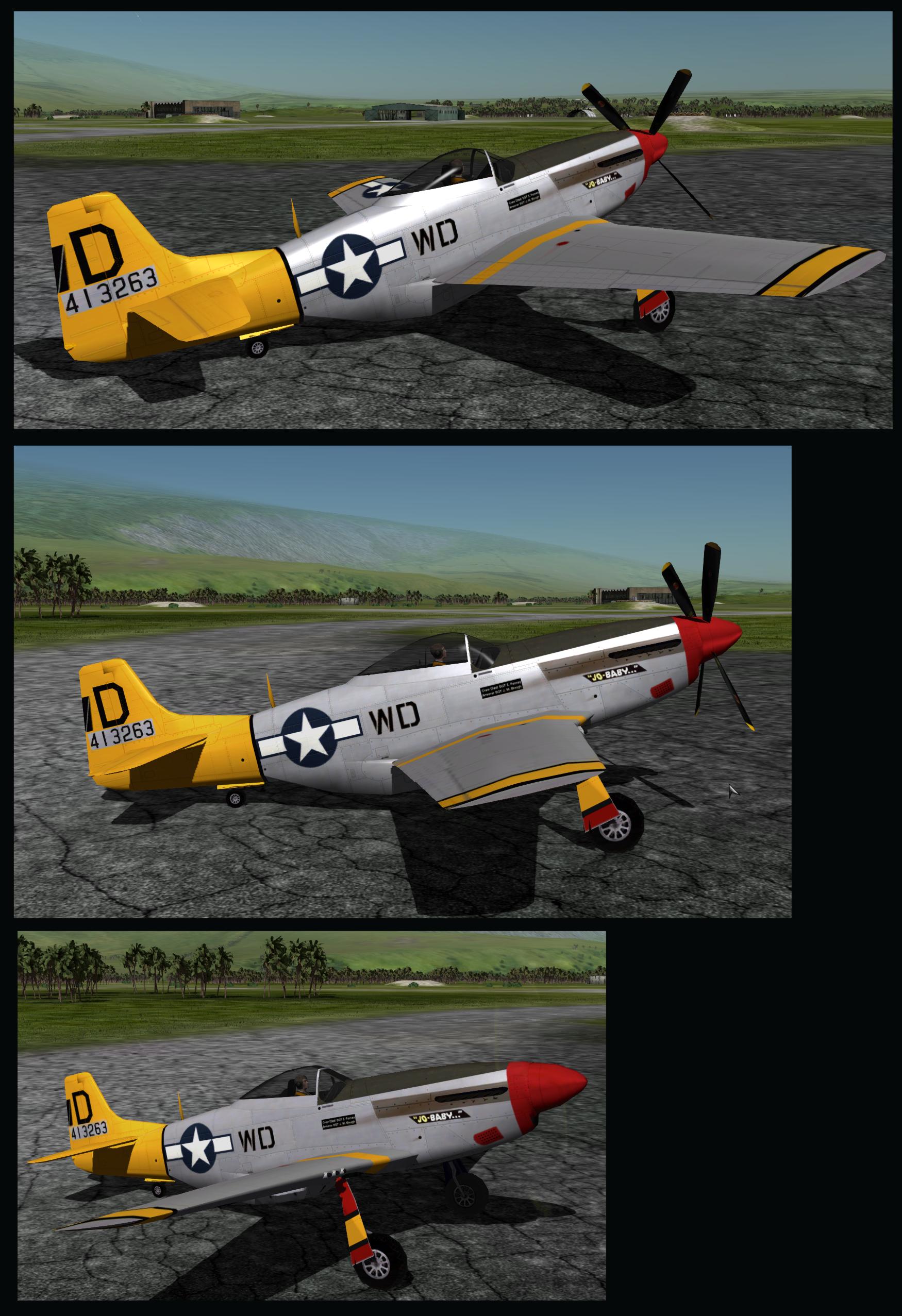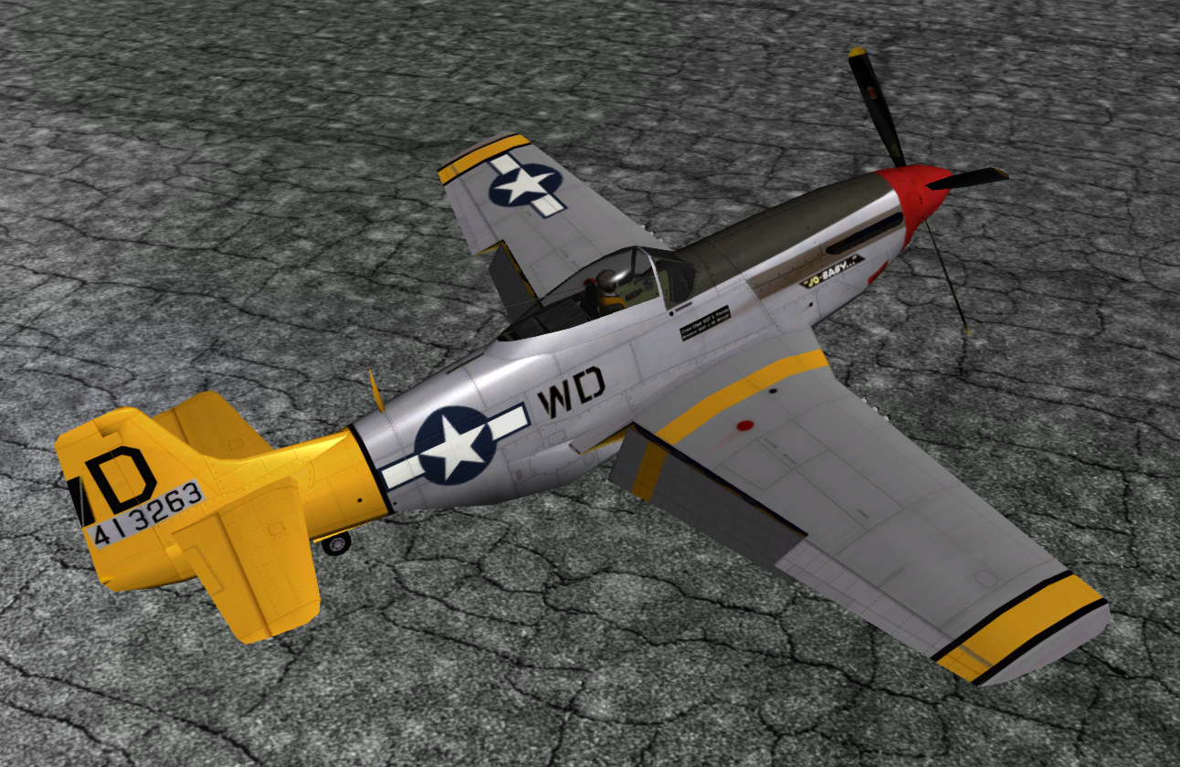 Here's what it looks like. Is this now too dark? I definitely think it looks better with the sunlight reflecting off of it than it does without. I believe the photo in flight (Mustang 00.bmp in the file list) is what it looked like about five percent lighter...