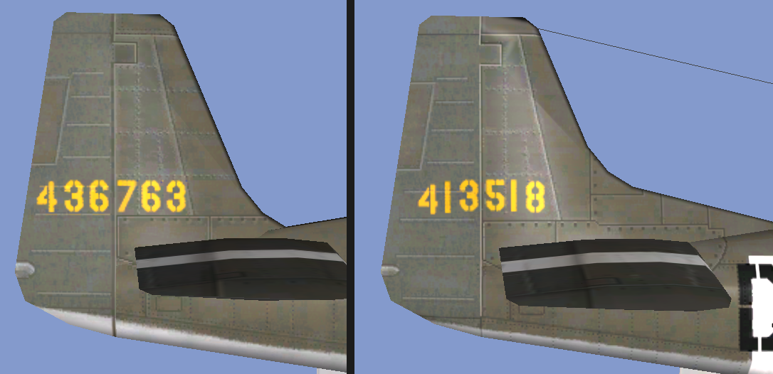 The tail on the B is far better looking. Just add a black to transparent gradient that stars on the dark panel line to simulate the curve of the rudder's front area.