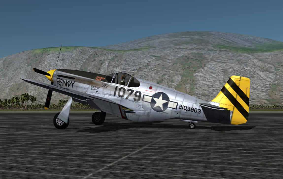 This skin was originally created as "Princess" by BH3841.   Research suggests that his scheme was of a 530th FS Mustang that had been reassigned to the 528th but had not yet been painted in 528th markings.   I have thus skinned it as an airplane that we know for certain was a 530th aircraft.   I retained BH3841's tail stripes (cleaned up) and some of the yellow paint used on the tail and spinner as a salute to the original artist.