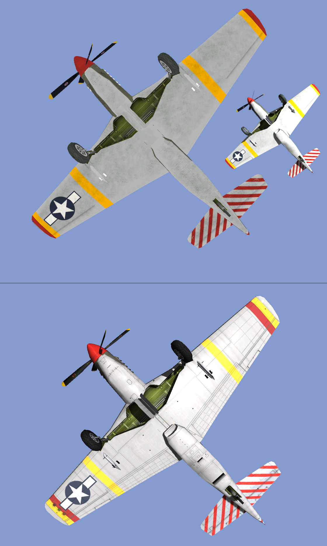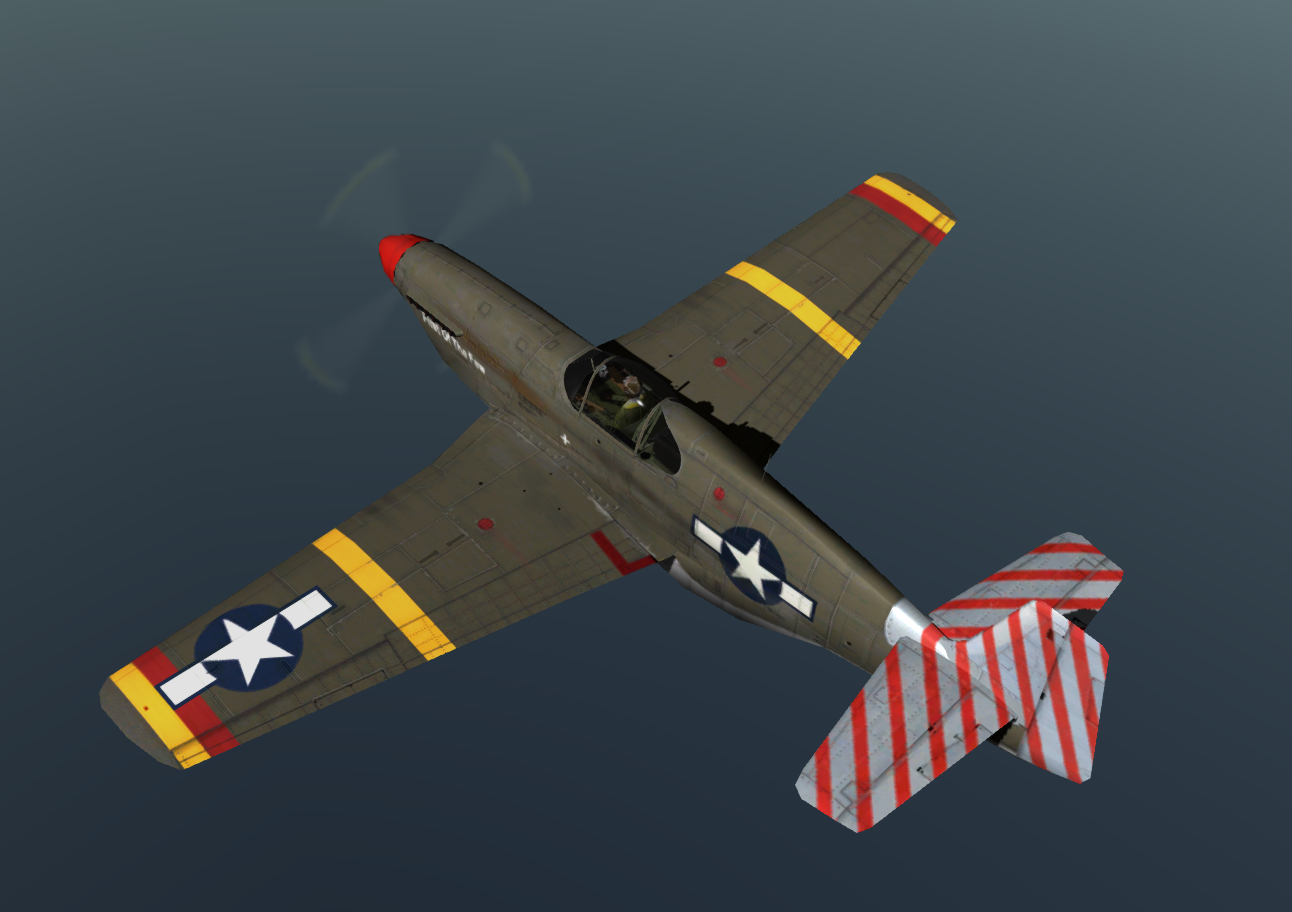 It is olive drab over gray but had the paint stripped off the tail, presumably to make the red stripes more visible.  It was originally skinned by Player1.  I retained his version of these (cleaned up) as a hat tip to his artistry.   This is one that really didn't need much to update it—I could have almost gotten away with a restoration rather than a redraw as the basic work done was quite good overall.   However, since my name is going to be on it I went ahead and did everything over.