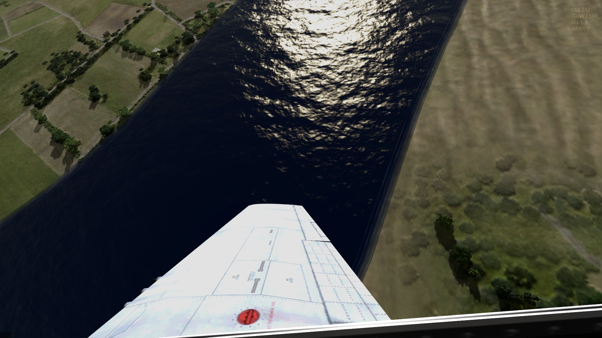 Here is one with a dark E map trending toward black. The metal flares up like crazy to the point of being almost pure white. In indirect light rolling away from the sun it does the same thing. The wing is almost obliterated by white. This does not happen when using a light gray for the E map, which I can't quite figure out.