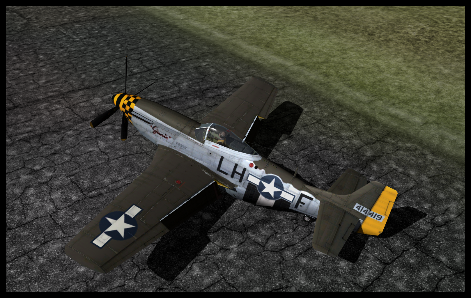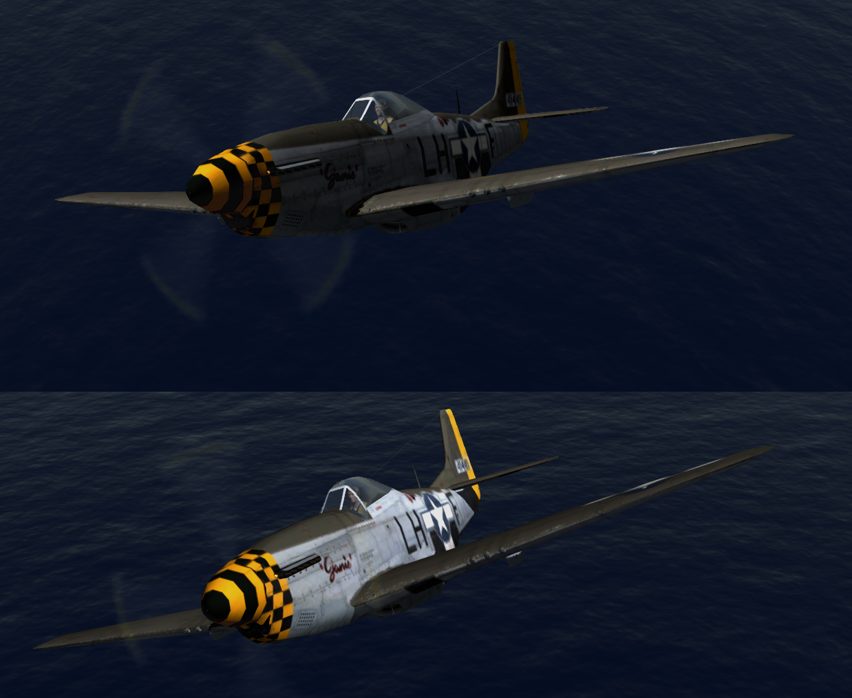 This skin is intentionally devoid of any exhaust staining, and, while that may not satisfy some people in their desire for "photorealism" (tm), it is correct per the available source photos of the aircraft.