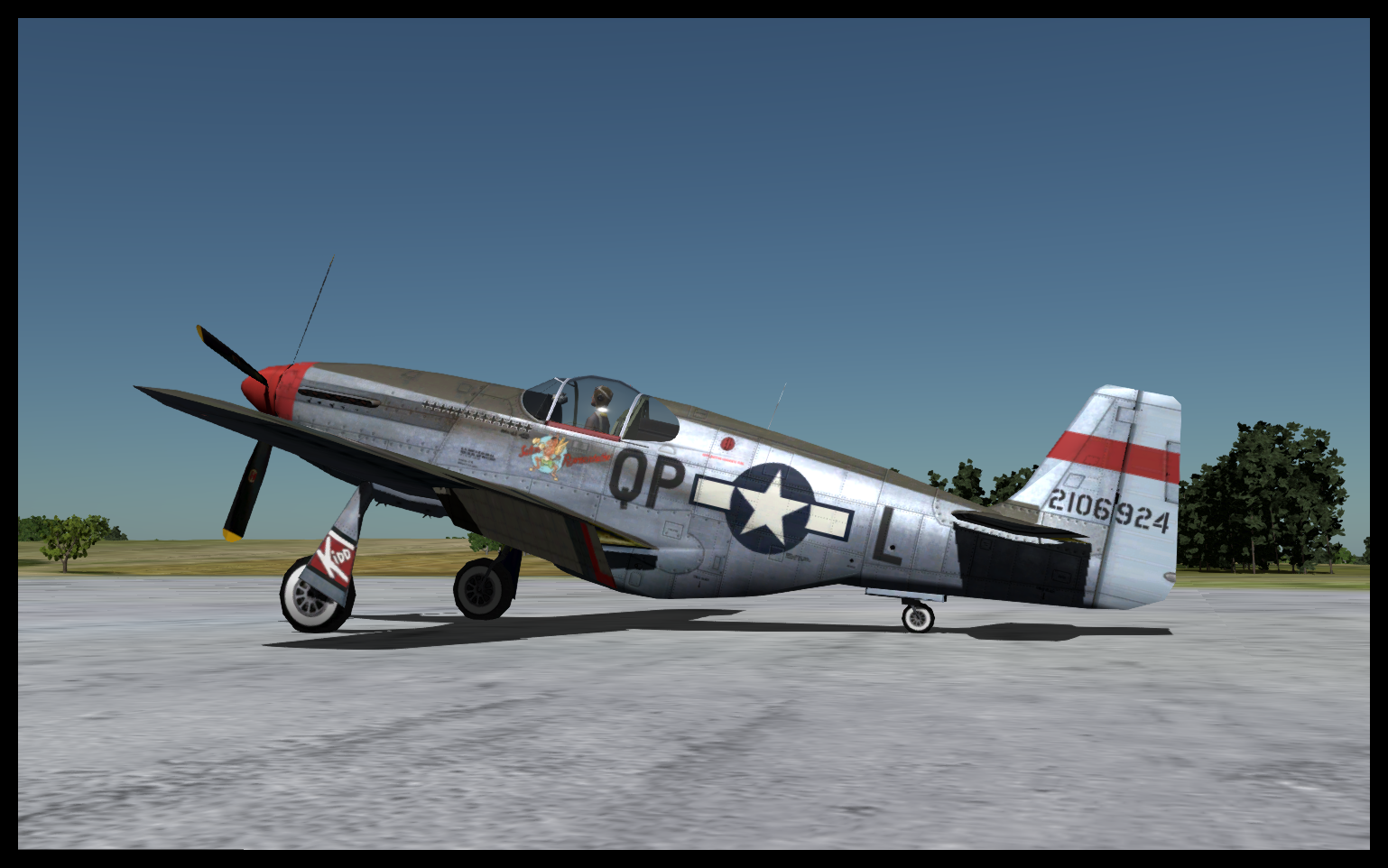 This is the P-51B-15-NA "Salem Representative" (s/n 42-106924) coded QP*L flown by legendary ace Ralph Kidd Hofer of the 4th FG, 334th FS.   Hofer was one of the top aces in the ETO with 30.5 planes to his credit--fourteen of these were while strafing, making Hofer one of the top strafers in the theater.