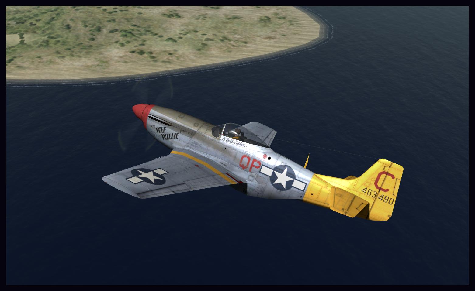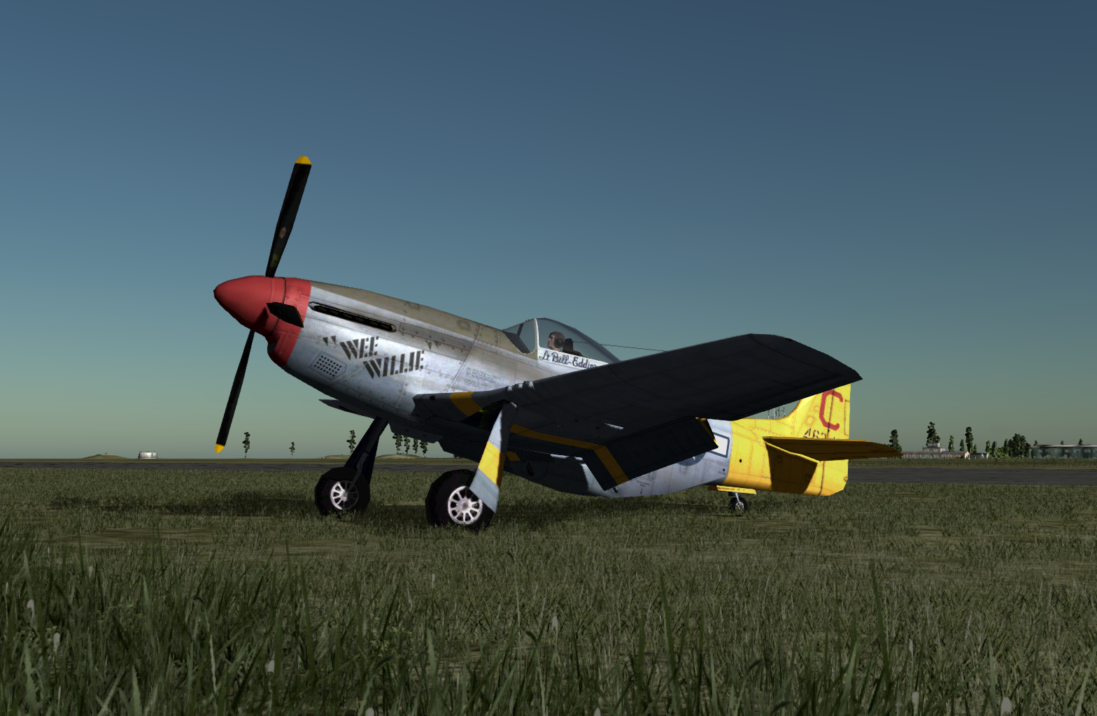 This is Lt. Bill Eddins’ P-51D-20-NA "WEE WILLIE" (s/n 44-63490, coded QP*C) of the 52nd Fighter Group, 2nd Fighter Squadron in Italy, 1944.  The airplane is named after Bill’s son.  Eddins, incidentally, is the cousin of Aces High member TMetal.   This Mustang features the distinct red lettering of the 2nd FS and is interesting in that it has the all-yellow tail but only the inner wing theater bands.   The 2nd FS jokingly referred to themselves as “The American Beagle Squadron” in reference to their Eagle Squadron predecessors.