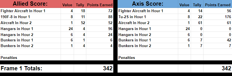 Note that aircraft launched between T+30 and T+60 are scored as Hour 1. For clarity, this point has been added to the rules.