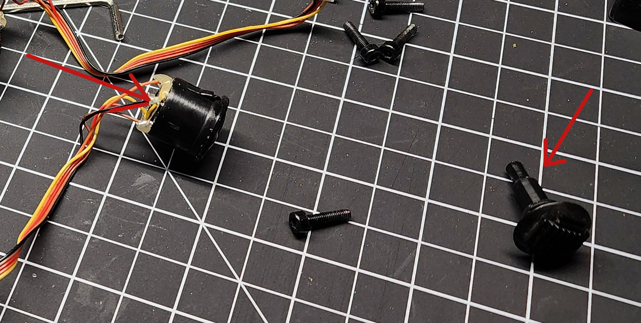 In the base of the switch (left arrow) it is made of plastic with a square hole in the base. The actuator is a plastic shaft attached to a medal thumb button. The arrow (right arrow) is pointing to the point where the shaft is cut square before it drops in diameter to the bottom of the shaft. This square cut fits in the square hole at the base of the switch and is used as the pivot point. Both show wear. When I push the switch up, it slips enough to contact the "right switch" giving me an "up and right" view.