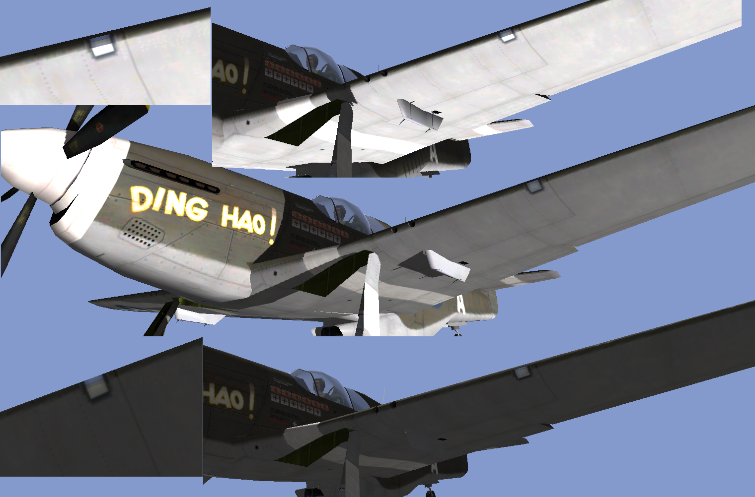 Not really, the idea is to have the sharp outer border to the landing light. Inside this border a darker shade blends smoothly to a slightly lighter shade towards the centre. Your light looks like a constant very light shade all over but with a dark shadow outside of the sharp border. A dark shade on the diffuse texture lets the reflected light from the specular and environment maps show up better.